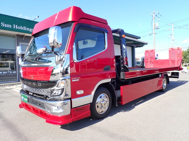 令和3年式のキャンター・キャリアカー(積載車・2t積)です。 カスタム仕様で装飾を施した、かっこいい車両です。 車検もあり、フルフラット型でラジコン付きなので様々な場面で活躍してくれる車両です。 お気軽にお問い合わせください。